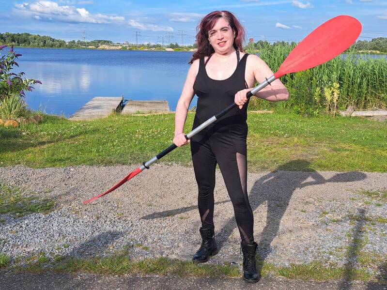 Na een korte uitleg over de zwemvesten en de peddel, gingen we het water in. De peddel moet je ongeveer met je hand kunnen raken en dan is het goed. Ik ben nog al klein, maar gelukkig had Marianne een kleine peddel van mijn formaat. En toen was het zover. Leren instappen in de kano. Ik vond het super spannend. Wat als de kano omslaat? Maar Marianne begeleide ons goed en niemand viel in het water. Eenmaal op het water voelde ik mij vrij en kon ik optimaal genieten van het meer. De spanning maakte ruimte voor energie en rust. Na een tijdje te hebben genoten van het uitzicht, bleek dat ik het iets te rustig aan deed. Marianne kwam eraan en deed voor hoe het moest. Als beginner lukte de technieken niet echt en deed ik maar wat. Maar ik kwam wel vooruit en ik vond het super leuk. ¨Pak het water, pak het water¨ zei Marianne, waarmee ze bedoelde dat ik meer kracht moest zetten en de peddels dieper in het water moest doen. Ik deed heel erg mijn best, maar wist, nee, dit was het toch niet, maar ondanks dat de technieken niet echt lukte, wist ik wel dit is wat ik wil doen. En als ik ergens voor ga, dan ga ik er helemaal voor. Marianna organiseert ook tochten. Dan vaar je van 10:00 tot 15:00 samen in een groep. Toen ik dat hoorde wist ik dat wil ik ook, maar goed ik was nog lang niet goed genoeg. Even kwam het in mijn gedachte, wat als ik niet goed genoeg ben. Maar via een mooie meditatie sessie, gingen die gedachtes weg en was ik weer enthousiast.