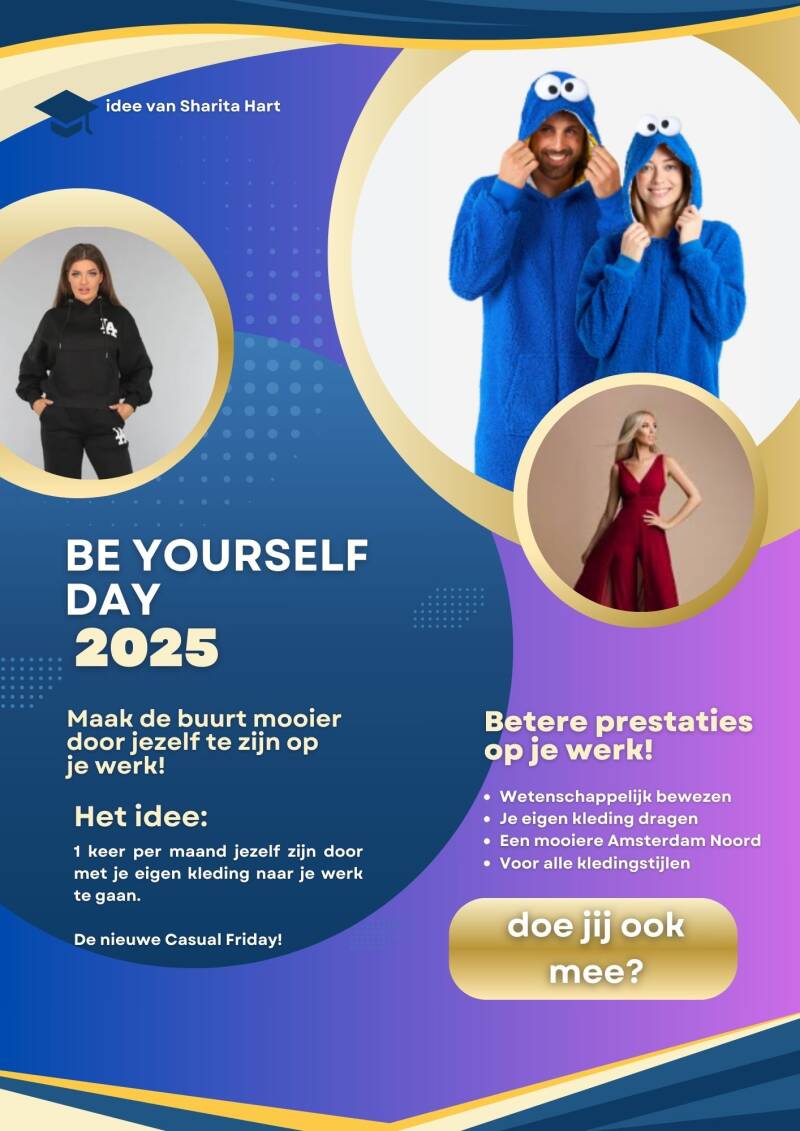 Be yourself day: Eén dag per maand , de laatste vrijdag, je eigen kleding aan naar je werk! Doe jij ook mee?