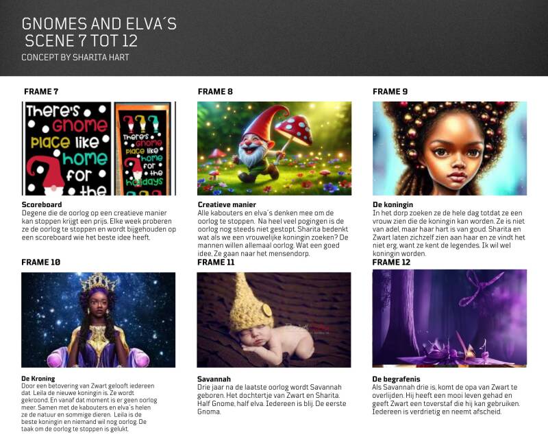 Nieuwe info juni 2024. Sharita is een elva, een elf en Zwart is een mensa. De beste vriend van Sharita is een kabouter. Als Sharita op een dag in het mensendorp is ziet ze Zwart. Een mensa met prachtig half lang haar. Ze wordt meteen verliefd. En ze vraagt aan the old lady of ze haar groter kan maken. Sharita en Zwart krijgen een relatie. Ze blijven heel lang samen totdat er oorlog is bij de mensa´s. Sharita wordt vermoord, haar keel wordt doorgesneden. Zwart is te laat en Sharita gaat dood. Zwart vermoord iedereen die met de moord te maken heeft en pleegt zelfmoord. In het hiernamaals zien ze elkaar weer. Zoals Braveheart. Savannah wordt niet geboren, maar in het grote hiernaals zijn ze samen met zijn drietjes.